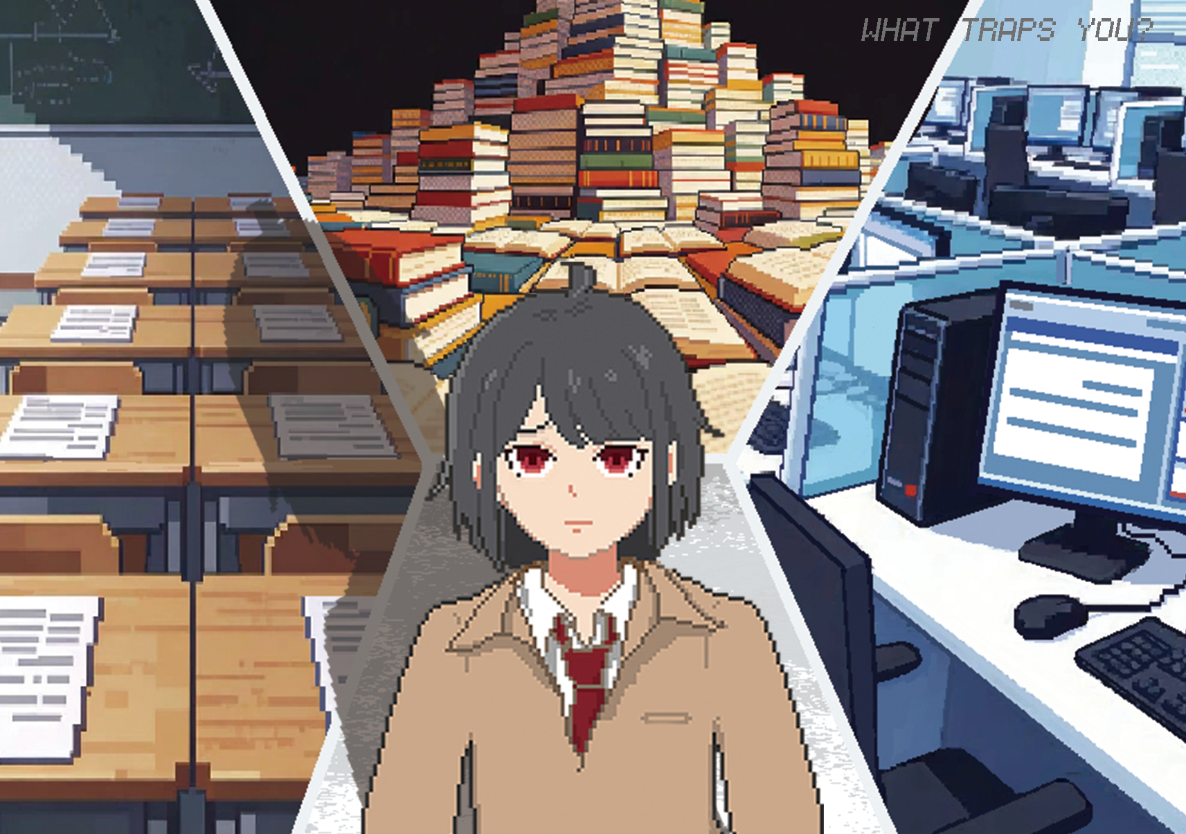 踏入这场荒诞又窒息的 RPG:在无限考场反复轮回;在人才培训班被焦虑洗脑;在公司承受老板 PUA、同事内卷、无休无止的压榨。